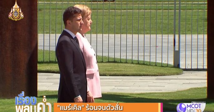 อากาศร้อนจัด! นายกรัฐมนตรีอังเกลา แมร์เคิล ของเยอรมนี ยืนตัวสั่นขณะต้อนรับประธานาธิบดียูเครน