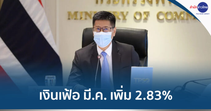 สำนักงานนโยบายและยุทธศาสตร์การค้าเผยอัตราเงินเฟ้อเดือน มี.ค.สูงขึ้นร้อยละ 2.83 ชะลอตัวลงต่อเนื่องเป็นเดือนที่ 3 และต่ำสุดในรอบ 15 เดือน มั่นใจเงินเฟ้อทั่วไปชะลอตัวเข้าสู่กรอบเป้าหมายตามคาดไว้แล้ว