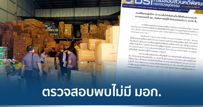 กองคดีคุ้มครองผู้บริโภค DSI ตรวจค้นโกดังสินค้าเครื่องใช้ไฟฟ้าและของเล่นเด็ก ตรวจสอบพบไม่มี มอก. เป็นอันตรายต่อผู้ใช้ ไม่ปลอดภัยต่อเด็กกว่า 20,000 ชิ้น