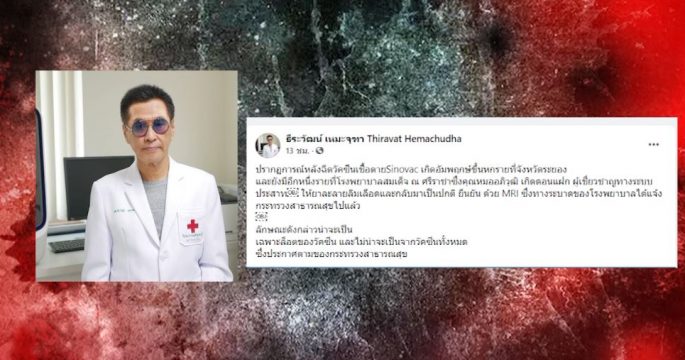 จับตาประเด็นที่มีการแชร์ข้อมูลว่า 6 คนไทยเป็นอัมพฤษ์ หลังฉีดวัคซีนซิโนแวค ช่วงบ่ายวันนี้ กระทรวงสาธารณสุข และหน่วยงานที่เกี่ยวข้องจะหารือกัน ก่อนแถลงรายละเอียดให้ได้ทราบ
