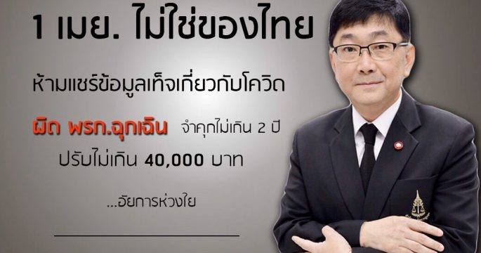 อัยการเตือนกุเรื่องหรือแชร์ข่าวปลอม “โควิด-19” ในวันที่ 1 เมษายน หรือ April Fool’s Day เสี่ยงโทษหนัก คุกไม่เกิน 2 ปี ปรับไม่เกิน 40,000 บาท