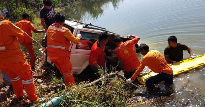 ระยอง 3 ม.ค.-เมียห้ามไม่ฟัง! หนุ่มใหญ่ญาตินายพลนามสกุลดังเกิดอาการวูบกระทันหัน ขับรถพุ่งตกสระน้ำจมมิดทั้งคันดับอนาถ ภรรยาเผยสามีเป็นโรคหัวใจและความดัน เคยเตือนไม่ให้ขับรถเด็ดขาด แต่สามีดื้อไม่ฟังคำเตือนจนเกิดเหตุสลดรับปีใหม่ เมื่อเวลา13.30 น.วันนี้(3 ม.ค.) ร.ต.อ.พันธ์ฐิติ ศิริมูล รองสารวัตร(สอบสวน) สภ.แกลง จ.ระยอง ได้รับแจ้งเกิดเหตุรถยนต์พุ่งตกลงไปในสระเก็บน้ำหลังวัดยางงาม ถนนวังยาง-วังจันทร์ ม.5 ต.กระแสบน อ.แกลง มีคนขับติดอยู่ในรถ จึงรุดไปตรวจสอบพร้อมด้วยแพทย์เวร รพ.แกลง และหน่วยกู้ภัยพุทธศาตร์สงเคราะห์เมืองแกลง ที่เกิดเหตุเป็นสระเก็บน้ำขนาดใหญ่ ลึกประมาณ 3-4 เมตร พบหลังคารถสีขาวโผล่ขึ้นมาส่วนตัวรถด้านหน้าจมอยู่ในน้ำ หน่วยกู้ภัยจึงใช้เชือกรีบดึงตัวรถขึ้นมา เป็นรถยนต์จี๊ป เชอโรกี สีขาว ทะเบียน พอ-4909 กรุงเทพฯ หลังดึงรถขึ้นมาพ้นน้ำ พบว่ามีคนหมดสติติดอยู่ที่เบาะคนขับ 1 คน เป็นผู้ชาย แพทย์รีบช่วยปั๊มหัวใจช่วยชีวิตและรีบนำตัวส่ง รพ.แกลง แต่พบว่าเสียชีวิตแล้ว เนื่องจากขาดอากาศหายใจ หลังจมอยู่ในน้ำร่วมครึ่งชั่วโมง ตรวจสอบภายในรถ พบหลักฐานของผู้เสียชีวิต ชื่อนายอภิรักษ์ มุกดาสนิท อายุ 54 ปี ซึ่งเป็นญาติของ […]
