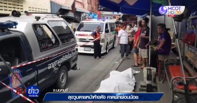 ลุงวัย 60 ปี ขี่จักรยานยนต์รับจ้าง วูบดับขณะนั่งรอรับผู้โดยสารหน้าห้างสรรพสินค้า ย่านปากเกร็ด หลังทำงานหนัก จนเกิดอาการหัวใจล้มเหลว