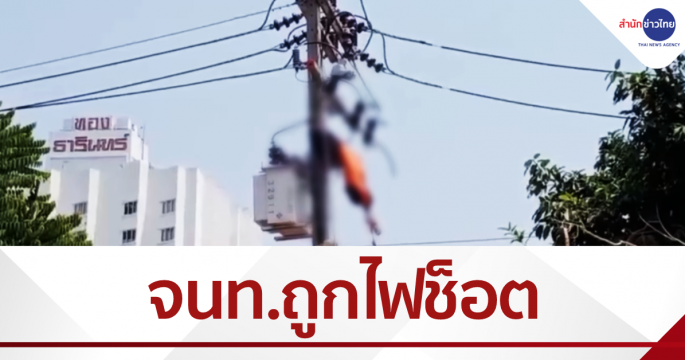 ไฟฟ้าแรงสูงช็อตเจ้าหน้าที่ขณะขึ้นไปซ่อมสายไฟ ร่างห้อยคาเสาไฟอาการสาหัส เจ้าหน้าที่ต้องปีนเสาไฟขึ้นไปนำร่างลงมาส่งโรงพยาบาล