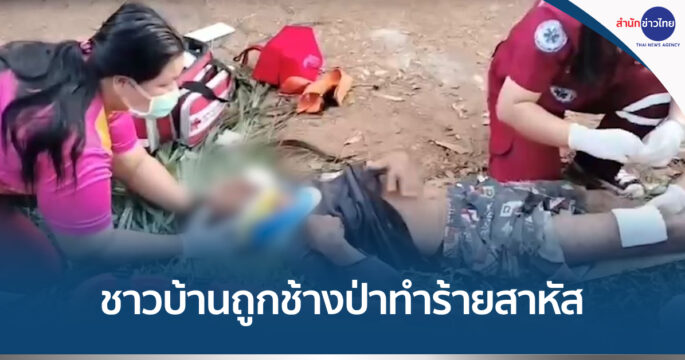 ชาวบ้าน ต.ท่ากระดาน อ.สนามชัยเขต จ.ฉะเชิงเทรา ถูกช้างป่าไล่ทำร้ายจนต้องวิ่งหนีตายหลบเข้าไปในป่ายูคาลิปตัส แต่หนีไม่พ้น ถูกช้างป่าทำร้ายอาการสาหัส