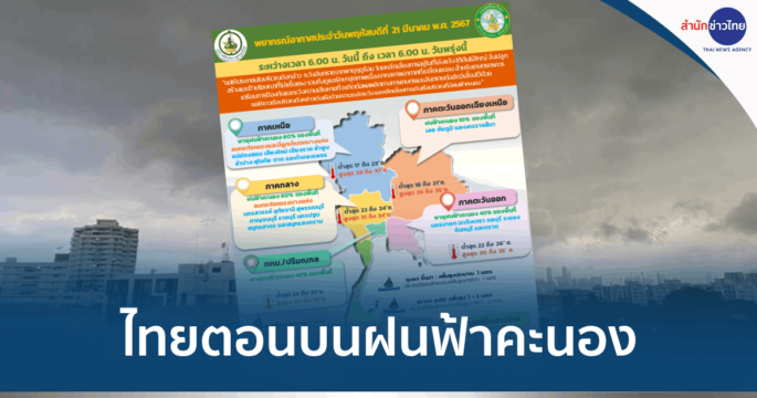 กรุงเทพฯ 6 มี.ค. – กรมอุตุฯ เผยไทยตอนบนอากาศร้อนถึงร้อนจัด ขณะที่ภาคกลางตอนล่างและภาคตะวันออก มีฝนฟ้าคะนองเกิดขึ้นได้บางพื้นที่ กรมอุตุนิยมวิทยา พยากรณ์อากาศ 24 ชั่วโมงข้างหน้า ความกดอากาศต่ำเนื่องจากความร้อนปกคลุมประเทศไทยตอนบน ลักษณะเช่นนี้ทำให้บริเวณดังกล่าวมีอากาศร้อนถึงร้อนจัดกับมีฟ้าหลัวในตอนกลางวัน ในขณะที่ลมใต้และลมตะวันออกเฉียงใต้พัดปกคลุมภาคกลางตอนล่างและภาคตะวันออก ทำให้บริเวณดังกล่าวมีฝนฟ้าคะนองเกิดขึ้นได้บางพื้นที่ ขอให้ประชาชนบริเวณประเทศไทยดูแลรักษาสุขภาพเนื่องจากอากาศร้อนถึงร้อนจัดที่อาจจะเกิดขึ้นในระยะนี้ไว้ด้วย สำหรับลมตะวันออกและลมตะวันออกเฉียงใต้พัดปกคลุมอ่าวไทย ภาคใต้ และทะเลอันดามัน ลักษณะเช่นนี้ทำให้ภาคใต้ยังคงมีฝนฟ้าคะนองบางแห่ง ส่วนคลื่นลมบริเวณอ่าวไทยตอนล่างและทะเลอันดามันมีคลื่นสูงประมาณ 1 เมตร บริเวณที่มีฝนฟ้าคะนองคลื่นสูงมากกว่า 1 เมตร ขอให้ชาวเรือบริเวณอ่าวไทยและทะเลอันดามันเดินเรือด้วยความระมัดระวัง และหลีกเลี่ยงการเดินเรือในบริเวณที่มีฝนฟ้าคะนองไว้ด้วย ฝุ่นละอองในระยะนี้: ภาคเหนือ ภาคตะวันออกเฉียงเหนือด้านตะวันตก และภาคกลางตอนบน มีการสะสมของฝุ่นละออง/หมอกควันอยู่ในเกณฑ์ปานกลางถึงสูง เนื่องจากลมที่พัดปกคลุมมีกำลังอ่อน และมีการระบายอากาศที่ไม่ดี พยากรณ์อากาศรายภาค กทม.-ปริมณฑล : อากาศร้อน กับมีฟ้าหลัวในตอนกลางวัน อุณหภูมิต่ำสุด 27-28 องศาเซลเซียส อุณหภูมิสูงสุด 34-39 องศาเซลเซียส ลมใต้ ความเร็ว 10-15 กม./ชม. ภาคเหนือ : อากาศร้อนถึงร้อนจัด กับมีฟ้าหลัวในตอนกลางวัน […]