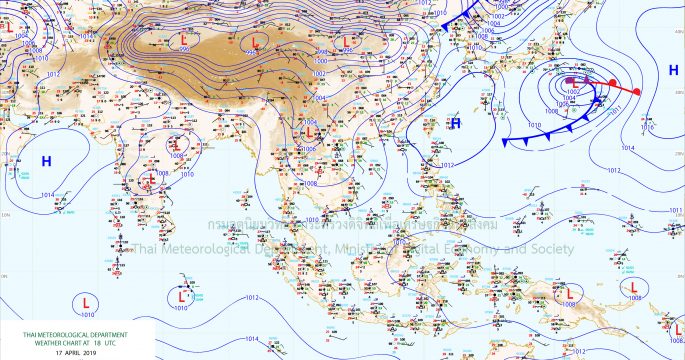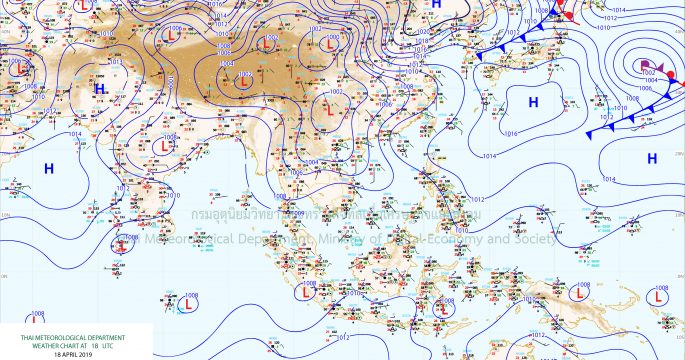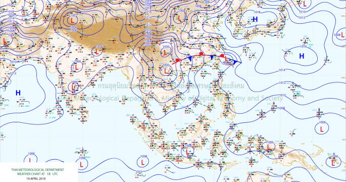 กรมอุตุนิยมวิทยา พยากรณ์อากาศ 24 ชั่วโมงข้างหน้า ประเทศไทยตอนบนมีอากาศร้อนถึงร้อนจัด สูงสุดภาคเหนือ 39-44 องศาเซลเซียส