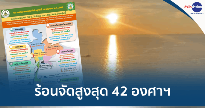 กรมอุตุฯ เผยประเทศไทยมีอากาศร้อนถึงร้อนจัดกับมีฟ้าหลัวในตอนกลางวัน ภาคเหนือ-กลาง อุณหภูมิสูงสุด 42 องศาฯ
