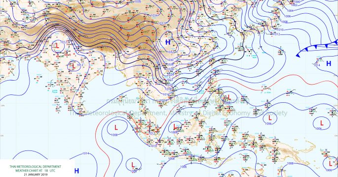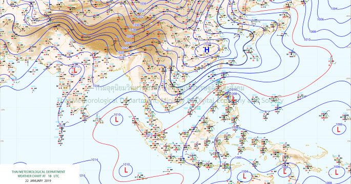 กรมอุตุฯ เผย ไทยตอนบน มีอากาศหนาวเย็นโดยทั่วไป อุณหภูมิจะลดลง 1-3 องศาฯ กับมีลมแรง กทม. ต่ำสุด 19-22 องศาฯ
