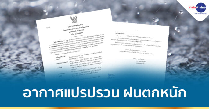 กรมอุตุฯ ประกาศฉบับที่ 2 เตือนไทยตอนบนอากาศแปรปรวน ช่วงวันที่ 30 พ.ย.-4 ธ.ค.นี้ ขณะที่ภาคใต้มีฝนตกหนักถึงหนักมาก 2-3 ธ.ค.