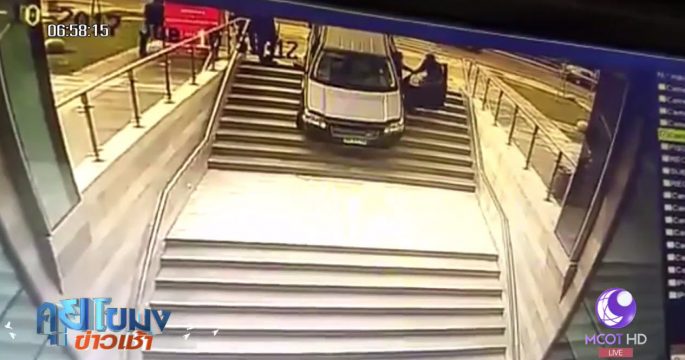 หญิงขับรถเลี้ยวรถลงบันไดรถไฟใต้ดิน เพราะเข้าใจผิดคิดว่าเป็นทางเข้าอาคารที่จอดรถ ผลรถไถลตกบันไดพังเสียหายยับ ส่วนเจ้าตัวออกจากรถได้ทัน