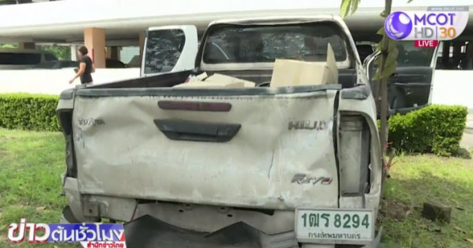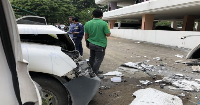 เกิดอุบัติเหตุรถกระบะตกจากชั้น 6 อาคารจอดรถของสำนักงานคณะกรรมการอาหารและยา ทำให้รถพังเสียหายทั้งคัน