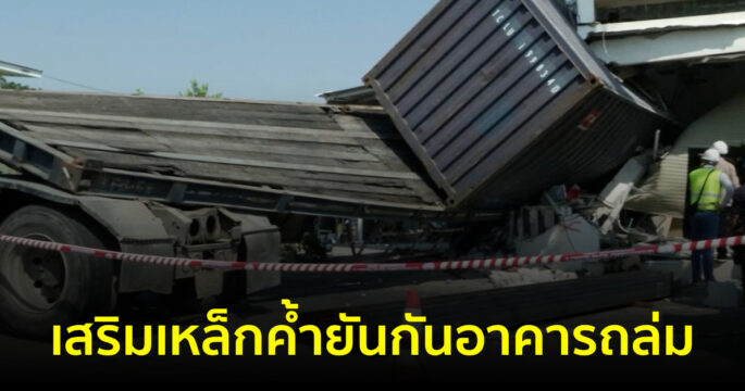 เสริมเหล็กค้ำยันกันอาคารถล่ม ยังเคลื่อนย้ายรถพ่วง 18 ล้อไม่ได้