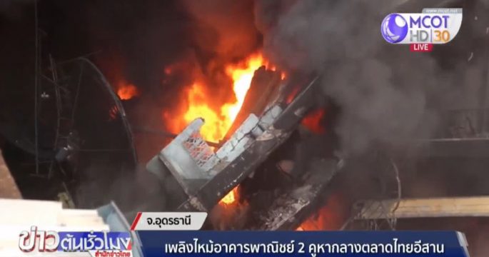 เกิดเหตุเพลิงไหม้อาคารพาณิชย์เก็บสินค้าย่านตลาดไทยอีสาน เขตเทศบาลนครอุดรธานี ตั้งแต่เช้ามืด ระดมรถน้ำรถโฟมฉีดสกัดนานนับชั่วโมง จึงคุมเพลิงให้อยู่ในวงจำกัด
