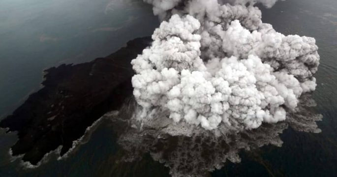 จาการ์ตา 24 ธ.ค.- สังคมออนไลน์แพร่ภาพมุมที่สูงกลุ่มควันพวยพุ่งขึ้นมาจากภูเขาไฟอานัก กรากาตัว ภายหลังจากการปะทุจนก่อให้เกิดคลื่นยักษ์สึนามิถล่มอินโดนีเซียเมื่อวันเสาร์ คลื่นยักษ์สึนามิที่เกิดจากดินถล่มใต้ทะเลจากภูเขาไฟปะทุ ทำให้มีผู้เสียชีวิตอย่างน้อย 281 คนและจะเพิ่มขึ้นอีก ภายหลังคลื่นยักษ์ทางช่องแคบซุนดาซัดเข้าชายฝั่งอินโดนีเซียโดยไม่ทันตั้งตัวเมื่อค่ำวันเสาร์ ภาพถ่ายทางอากาศที่ได้เมื่อวันอาทิตย์มาจากเครื่องบินเช่าเหมาลำที่บินตรวจการณ์เพื่อสำรวจสภาพความเสียหายจากภัยพิบัติดังกล่าว สำนักงานควบคุมภัยพิบัติแห่งชาติอินโดนีเซียรายงานว่า ประชาชนกว่าพันคนได้รับบาดเจ็บ อาคารบ้านเรือนพังเสียหายกว่า 500 หลัง .- สำนักข่าวไทย