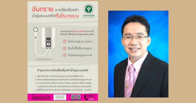 สธ.เตือนการใช้เครื่องทำน้ำอุ่นระบบแก๊สอาบน้ำหน้าหนาว ต้องมีช่องระบายอากาศ หากมีอาการวิงเวียน ปวดศีรษะ มึนงง หายใจลำบาก ได้กลิ่นแก๊สมากผิดปกติให้รีบออกจากห้องน้ำ