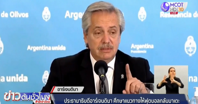 ประธานาธิบดีอาร์เจนตินา เผยกำลังศึกษาความเป็นไปได้และแนวทางปฏิบัติในการอนุญาตให้ฟุตบอลกลับมาแข่งขันอีกครั้ง