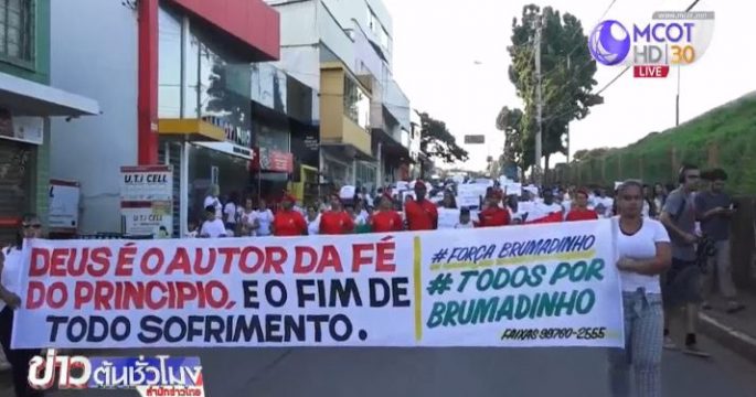 ชาวบ้านในเมืองบรูมาดินโญในบราซิล ซึ่งอยู่ใกล้กับเขื่อนกักเก็บหางแร่ แสดงความอาลัยต่อผู้เสียชีวิตจากเหตุการณ์เขื่อนแตก