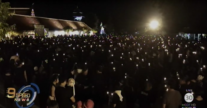 พสกนิกรชาวนครศรีธรรมราชทุกหมู่เหล่ากว่า 2,000 คน และคณะนักเรียนรางวัลทุนพระราชทาน ร่วมพิธีจุดเทียนศรัทธาแสดงความอาลัย