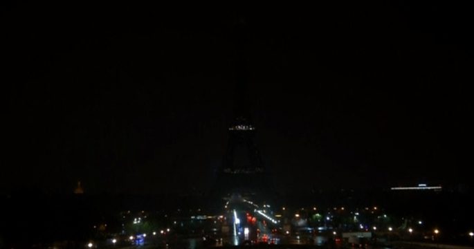 หอไอเฟลสัญลักษณ์แห่งกรุงปารีสของฝรั่งเศสดับไฟมืดเมื่อค่ำวันจันทร์ เพื่อแสดงความอาลัยต่อผู้เคราะห์รายในเหตุโจมตีที่ลาสเวกัสและมาร์กเซย
