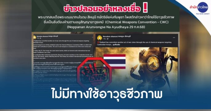 ทำเนียบ 29 ก.ค.-รัฐบาลไทยย้ำ ไม่มีทางที่จะใช้อาวุธชีวภาพในกัมพูชา เพราะเป็นการปะทะชายแดนเท่านั้น ชี้ข่าวจากเฟซบุ๊กปลอมเป็นความพยายามบิดเบือน สร้างความแตกแยกในภูมิภาค นายจิรายุ ห่วงทรัพย์ โฆษกประจำสำนักนายกรัฐมนตรี คณะกรรมการศูนย์เฉพาะกิจบริหารสถานการณ์บริเวณชายแดนไทย-กัมพูชา (ศบ.ทก.) เปิดเผยว่า จากกรณีสื่อมวลชนกัมพูชาเผยแพร่ข้อมูลโดยอ้างอิงจาก “เฟซบุ๊กแฟนเพจ” ซึ่งระบุว่าเป็นของกษัตริย์แห่งราชอาณาจักรกัมพูชา และมีการกล่าวหาอย่างร้ายแรง ว่าไทยใช้อาวุธชีวภาพในการโจมตีในพื้นที่ชายแดนนั้น รัฐบาลขอปฏิเสธข้อกล่าวหาดังกล่าวโดยสิ้นเชิง และคาดว่า เฟซบุ๊กดังกล่าวเป็นบัญชีปลอม และเป็นความพยายามอย่างชัดแจ้งในการบิดเบือนข้อเท็จจริง รัฐบาลยืนยันว่า การปฏิบัติการของกองทัพไทยอยู่ภายใต้กรอบกฎหมายระหว่างประเทศอย่างเคร่งครัด โดยเฉพาะพันธกรณีภายใต้อนุสัญญาห้ามอาวุธเคมี (Chemical Weapons Convention: CWC) และองค์การห้ามอาวุธเคมี (Organisation for the Prohibition of Chemical Weapons: OPCW) ประเทศไทยไม่มีนโยบายหรือแนวปฏิบัติในการใช้หรือพัฒนาอาวุธชีวภาพหรืออาวุธต้องห้ามใดๆ ทั้งสิ้น การปะทะที่เกิดขึ้นเป็นเพียงการป้องกันอธิปไตยตามแนวชายแดน มิใช่สงครามเต็มรูปแบบ และกองทัพไทยยังคงดำรงจริยธรรมทางการทหารอย่างสุภาพบุรุษเสมอมา ทั้งนี้ ในยุคปัจจุบัน เทคโนโลยีสามารถตรวจจับสารพิษตกค้างหรือการใช้อาวุธต้องห้ามได้อย่างแม่นยำ ไม่สามารถปกปิดได้ในเวทีระหว่างประเทศ หากไทยใช้อาวุธชีวภาพจริง ย่อมมีการตรวจพบโดยองค์การสหประชาชาติและหน่วยงานด้านความมั่นคงทั่วโลกแล้ว รัฐบาลไทยขอเตือนประชาชนและสื่อมวลชนให้ใช้วิจารณญาณอย่างรอบคอบในการรับข้อมูลจากแหล่งที่ไม่น่าเชื่อถือ โดยเฉพาะสื่อออนไลน์ หรือเฟซบุ๊กแฟนเพจที่ไม่มีการยืนยันตัวตนอย่างเป็นทางการ และขอเรียกร้องให้ทุกฝ่ายหลีกเลี่ยงการเผยแพร่ข้อมูลเท็จหรือบิดเบือนที่อาจบั่นทอนความสัมพันธ์ระหว่างประเทศ พร้อมเน้นย้ำจุดยืนของไทยในการลดความตึงเครียดและผลักดันการเจรจาสันติภาพอย่างยั่งยืนในภูมิภาค.-314.-สำนักข่าวไทย