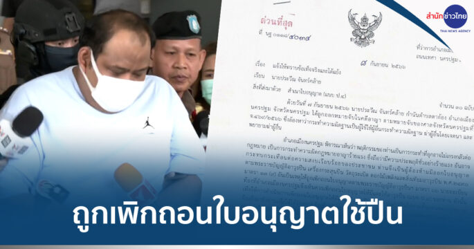 งานเข้าไม่หยุด ล่าสุด “กำนันนก” โดนเพิกถอนใบอนุญาตมีและใช้อาวุธปืน จำนวน 10 กระบอก หลังเพิ่งถูกนายอำเภอเมืองนครปฐมสั่งพักงาน