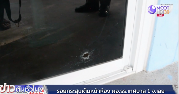 ตำรวจเข้าตรวจสอบภายในโรงเรียนเทศบาล 1 หลังรับแจ้งจากผู้อำนวยการ ว่ามีคนร้ายไม่ทราบจำนวน ใช้อาวุธปืนยิงใส่ห้องทำงาน รอยกระสุนพรุนเต็มหน้าห้อง