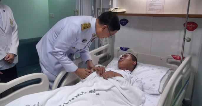 แม่ทัพภาคที่ 4 เยี่ยมให้กำลังใจและมอบเงินช่วยเหลือ อาสาสมัครทหารพรานสำราญ ที่บาดเจ็บจากเหตุปะทะกลุ่มคนร้าย ขณะตรวจค้นแหล่งหลบซ่อนที่ ต.ดอน อ.ปะนาเระ จ.ปัตตานี