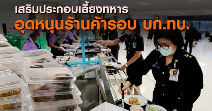 กองทัพบกอุดหนุนร้านค้ารายย่อยรอบกองบัญชาการ สั่งซื้ออาหารกล่องเสริมการประกอบเลี้ยงกำลังพล หวังช่วยร้านเพิ่มยอดขาย หลังได้รับลดผลกระทบจากโควิด