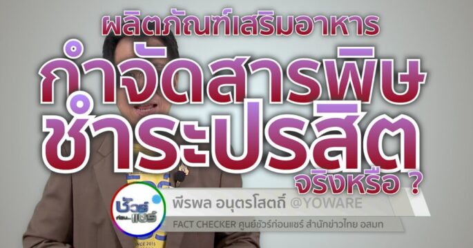 8 ธันวาคม 2567 – ตามที่มีการแชร์ข้อความแนะนำผลิตภัณฑ์เสริมอาหาร โดยบอกว่า เป็นตัวช่วยกำจัดสารพิษตกค้าง และชำระล้างสิ่งสกปรก จำพวกพยาธิ ปรสิต ตัวอ่อน สารโลหะหนัก เมือกที่เกาะอยู่ตามผนังลำไส้ได้ บทสรุป : ไม่จริง ไม่ควรแชร์ ❌ ศูนย์ชัวร์ก่อนแชร์ ตรวจสอบกับ รศ.ภก.ดร.บดินทร์ ติวสุวรรณ คณะเภสัชศาสตร์ จุฬาลงกรณ์มหาวิทยาลัย ผลิตภัณฑ์เสริมอาหารที่อวดอ้างว่าสามารถกำจัดสารพิษ ชำระล้างปรสิตได้ จริงหรือ ? รศ.ภก.ดร.บดินทร์ อธิบายว่า ผลิตภัณฑ์เสริมอาหารก็คืออาหารชนิดหนึ่ง ไม่มียาหรือสารใด ๆ ที่สามารถรักษาหรือป้องกันโรคได้ ผลิตภัณฑ์เสริมอาหารไม่ได้มีสารใดๆ ที่สามารถกำจัดสารพิษ ชำระล้างปรสิตได้ จริงหรือ ? ผลิตภัณฑ์เสริมอาหารหลายชนิดที่อ้างว่าสามารถกำจัดสารพิษ ชำระล้างปรสิตได้นั้น ส่วนใหญ่แล้วไม่ได้มีสารใด ๆ ที่สามารถทำเช่นนั้นได้จริง และส่วนประกอบที่ระบุบนฉลากก็ไม่ได้รับประกันว่าจะมีปริมาณเท่าที่ระบุไว้เสมอไป ระวังการรับประทานเกรปฟรุต เพราะอาจจะตีกับยาบางชนิดได้ จริงหรือ ? แพทย์เน้นย้ำและเตือนให้ระวังการรับประทานเกรปฟรุต เพราะอาจจะตีกับยาบางชนิดได้ ดังนั้น อย่าหลงเชื่อคำโฆษณาที่อ้างว่าผลิตภัณฑ์เสริมอาหารสามารถรักษาหรือป้องกันโรคได้ สรุป ผลิตภัณฑ์เสริมอาหารไม่สามารถกำจัดสารพิษ […]