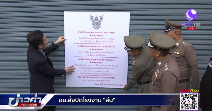 อย.และตำรวจ ร่วมกันนำคำสั่งปิดโรงงานผลิตอาหารเสริมยี่ห้อลีนบล็อก เบิร์น เบรก บิวท์ และเอฟเอส-ทรี เป็นเวลา 120 วัน พร้อมยกเลิกเลขสารบบ อย. และเตรียมดำเนินคดีกับผู้เกี่ยวข้องฐานทำให้มีคนเสียชีวิต