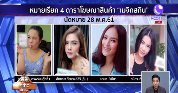 ตำรวจเปิดอีก 4 รายชื่อดารานักแสดงลอตล่าสุดที่ต้องเข้าให้ปากคำคดีเมจิกสกิน ส่วนดีเจนุ้ย หอบสินค้าให้ สคบ.ตรวจสอบ