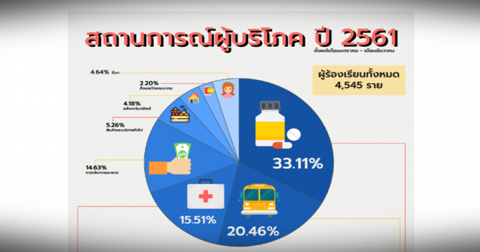 มูลนิธิเพื่อผู้บริโภค เผยสถานการณ์ผู้บริโภคประจำปี61 พบการร้องเรียนเรื่องการโฆษณาเกินจริง เกี่ยวกับผลิตภัณฑ์สุขภาพ อาหารเสริมมากเป็นอันดับ 1