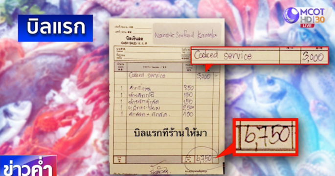 ที่ จ.ภูเก็ต มีลูกค้าที่ไปเที่ยวสั่งอาหารทะเลที่นั่นรับประทาน แต่พอเห็นบิลแทบช็อก เพราะราคาอาหารรวมค่าบริการปาเข้าไปเกือบ 7,000 บาท ล่าสุดผู้จัดการร้านออกมาชี้แจงแล้ว