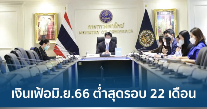 พาณิชย์เผยเงินเฟ้อเดือน มิ.ย.66 ชะลอตัวต่อเนื่องต่ำสุดรอบ 22 เดือนอยู่ที่ร้อยละ 0.23 โดยกลุ่มสินค้าอาหารและพลังงานอยู่ในช่วงขาลง ทำให้ สนค.ปรับตัวเลขคาดการณ์อัตราเงินเฟ้อเฉลี่ยทั้งปี 66 อยู่ระหว่างร้อยละ 1.0 – 2.0 โดยมีค่ากลาง 1.5 เพื่อให้สอดคล้องกับสถานการณ์ทางเศรษฐกิจในช่วงครึ่งปีหลังนี้