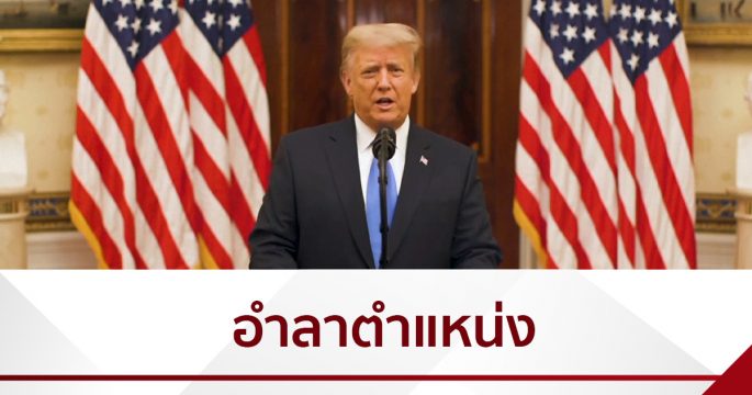 ประธานาธิบดีโดนัลด์ ทรัมป์ กล่าวอำลาตำแหน่ง โดยมิได้เอ่ยถึงนายโจ ไบเดน ผู้ที่จะเข้ารับตำแหน่งประธานาธิบดีคนต่อไป