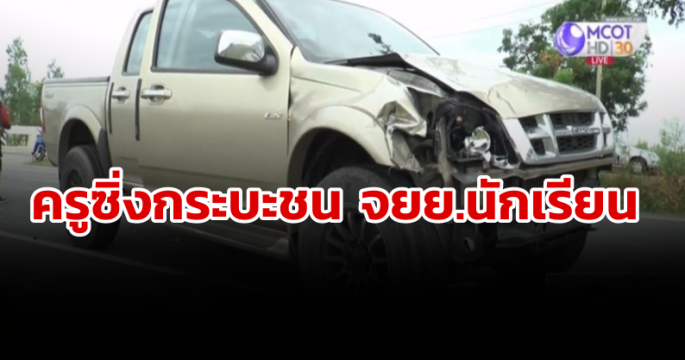 ครู อ.พิมาย ซิ่งกระบะชน จยย.นักเรียนเจ็บสาหัส อ้างเด็กขับรถตัดหน้า