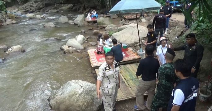 เชียงใหม่ 6 ธ.ค.-โดนแล้ว! ร้านอาหารกลางลำน้ำแม่สา เชียงใหม่ ถูกเจ้าหน้าที่เข้ารื้อถอนแล้ว หลังบุกรุกตั้งโต๊ะเก้าอี้-แพไม้ไผ่ให้นักท่องเที่ยวนั่งรับประทานอาหารตามโขดหินกลางลำน้ำ พร้อมคาดโทษหากยังฝ่าฝืน จะดำเนินคดีตามกฎหมายทุกราย วันนี้(6 ธ.ค.)เจ้าหน้าที่ตำรวจ ทหาร ฝ่ายปกครอง เจ้าหน้าที่ป่าไม้และเจ้าท่าส่วนภูมิภาค นำกำลังกว่า 30 นาย เข้าตรวจสอบร้านอาหารที่รุกล้ำลำน้ำแม่สา ต.แม่แรม อ.แม่ริม จ.เชียงใหม่ พบมีการปลูกสร้างทั้งกระท่อมไม้ไผ่และแพไม้ไผ่รุกล้ำลงไปในลำน้ำ ทั้งยังมีการสร้างสะพานไม้ไผ่โครงสร้างเป็นเหล็กทอดข้ามลำน้ำ เป็นจุดขายเพื่อให้ลูกค้าเข้ามานั่งพักผ่อนรับประทานอาหารแบบใกล้ชิดธรรมชาติ ขณะเจ้าหน้าที่เข้าตรวจสอบ พบร้านอาหารดังกล่าวมีลูกค้าทั้งคนไทยและต่างชาติ นั่งรับประทานอาหารอยู่จนเต็มลำน้ำ บางร้านมีลูกค้ากำลังนั่งดื่มสุราอยู่ด้วย เจ้าหน้าที่จึงแจ้งให้เจ้าของร้านอาหารถอนสิ่งปลูกสร้างที่รุกล้ำลำน้ำออกให้หมดภายในวันนี้ ซึ่งมีประมาณ 6 ราย พร้อมทั้งคาดโทษว่าหากมาตรวจสอบอีกครั้งพบว่ายังไม่ยอมรื้อถอนออกไป จะมีการดำเนินคดีตามกฎหมายทุกราย.-สำนักข่าวไทย