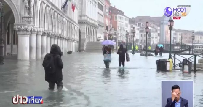 หลายพื้นที่ของเมืองเวนิสในอิตาลียังคงมีน้ำท่วมในคืนวันพุธตามเวลาท้องถิ่น หลังจากกระแสน้ำสูงที่สุดในรอบ 50 ปีเข้าท่วมเมืองประวัติศาสตร์