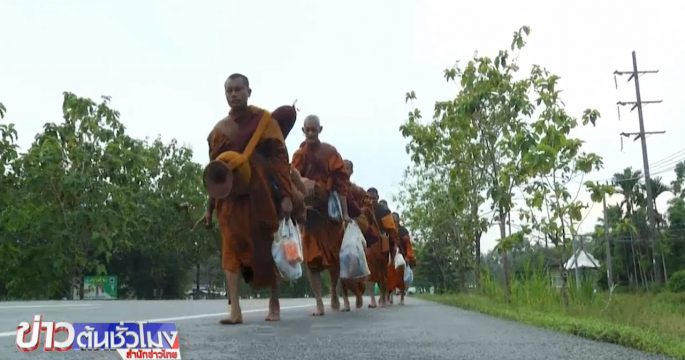 วันนี้เป็นวันที่ 3 ที่พระภิกษุ 6 รูป ออกเดินธุดงค์จาก จ.พัทลุง ไปปฏิบัติธรรมที่ จ.เชียงราย มีพุทธศาสนิกชนมารอทำบุญระหว่างทางด้วย โดยมีเป้าหมายจะเดินถึงจุดหมายต้นเดือนหน้า