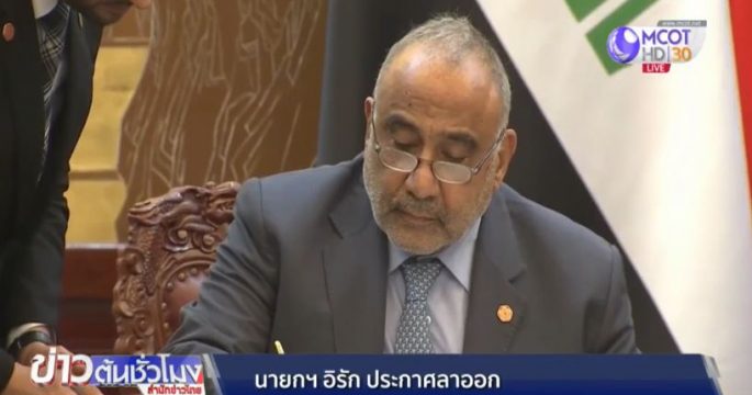 “อาเดล อับดุล มาห์ดี” นายกรัฐมนตรีอิรักประกาศลาออก เพื่อรับผิดชอบต่อเหตุการณ์ความวุ่นวายจากการประท้วงต่อต้านรัฐบาลที่ยืดเยื้อมานาน 2 เดือน