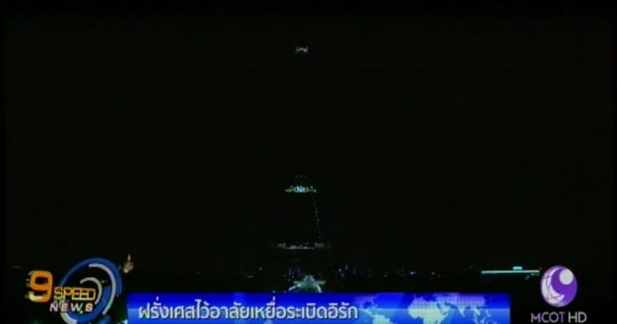 หอไอเฟลในกรุงปารีสของฝรั่งเศส ดับไฟเมื่อช่วงค่ำวันอังคาร ตามเวลาท้องถิ่น เพื่อไว้อาลัยแก่เหยื่อระเบิดรถยนต์หน้าร้านไอศกรีมในย่านใจกลางกรุงแบกแดด เมื่อวานนี้