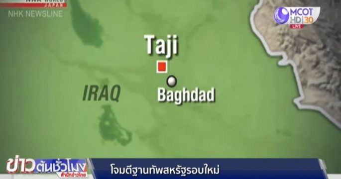 กระทรวงกลาโหมอิรักเผยฐานทัพสหรัฐในเมืองทาจิ ทางตอนเหนือของกรุงแบกแดด ถูกโจมตีด้วยจรวดหลายลูก ทางการอิรักระบุไม่มีผู้เสียชีวิตหรือบาดเจ็บ