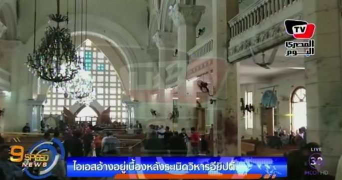 ไอเอสอ้างตัวว่า เป็นผู้วางระเบิดโบสถ์คริสตจักรคอปติกออร์โธดอกซ์ในกรุงไคโรของอียิปต์เมื่อวันอาทิตย์ที่มีผู้เสียชีวิต 25 คน