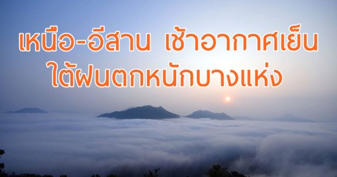 กรมอุตุฯ เผยเหนือ อีสาน อากาศเย็นในตอนเช้า ส่วนบริเวณชายฝั่งของภาคตะวันออกมีฝนฟ้าคะนองบางพื้นที่ ภาคใต้มีฝนตกหนักบางแห่ง