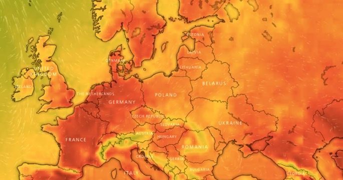 หลายประเทศในยุโรปเผชิญกับสภาพอากาศร้อนจัดเป็นประวัติการณ์ โดยฝรั่งเศสและสเปน อุณหภูมิพุ่งเกิน 40 องศาเซลเซียส