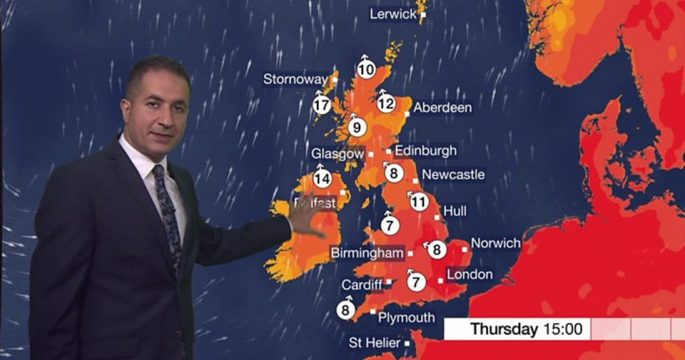 สำนักอุตุนิยมวิทยาอังกฤษพยากรณ์ว่า อุณหภูมิของประเทศในวันนี้น่าจะร้อนที่สุดนับตั้งแต่ต้นปีจนถึงขณะนี้