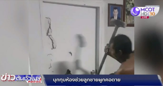 นาทีชีวิต! พ่อใช้ค้อนทุบพังประตูเข้าห้อง หวังเข้าไปช่วยลูกชายที่ผูกคอตายและใช้มีดแทงตัวเอง แต่ช่วยไม่ทัน ลูกชายเสียชีวิตแล้ว