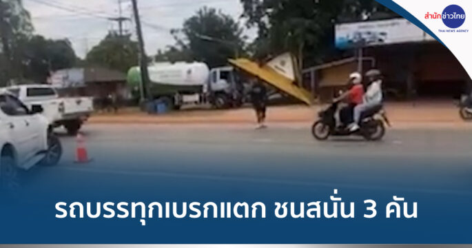 รถบรรทุกสารแอมโมเนีย เบรกแตกชนสนั่นกลางสี่แยกถนน อ.บ้านดุง-บ้านหนองเม็ก จ.อุดรธานี รถเสียหาย 3 คัน บาดเจ็บ 2 คน