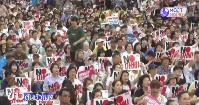 ชาวเกาหลีใต้หลายพันคนรวมตัวชุมนุมในกรุงโซล ประท้วงญี่ปุ่นเข้มงวดการส่งออกโลหะหายากให้เกาหลีใต้